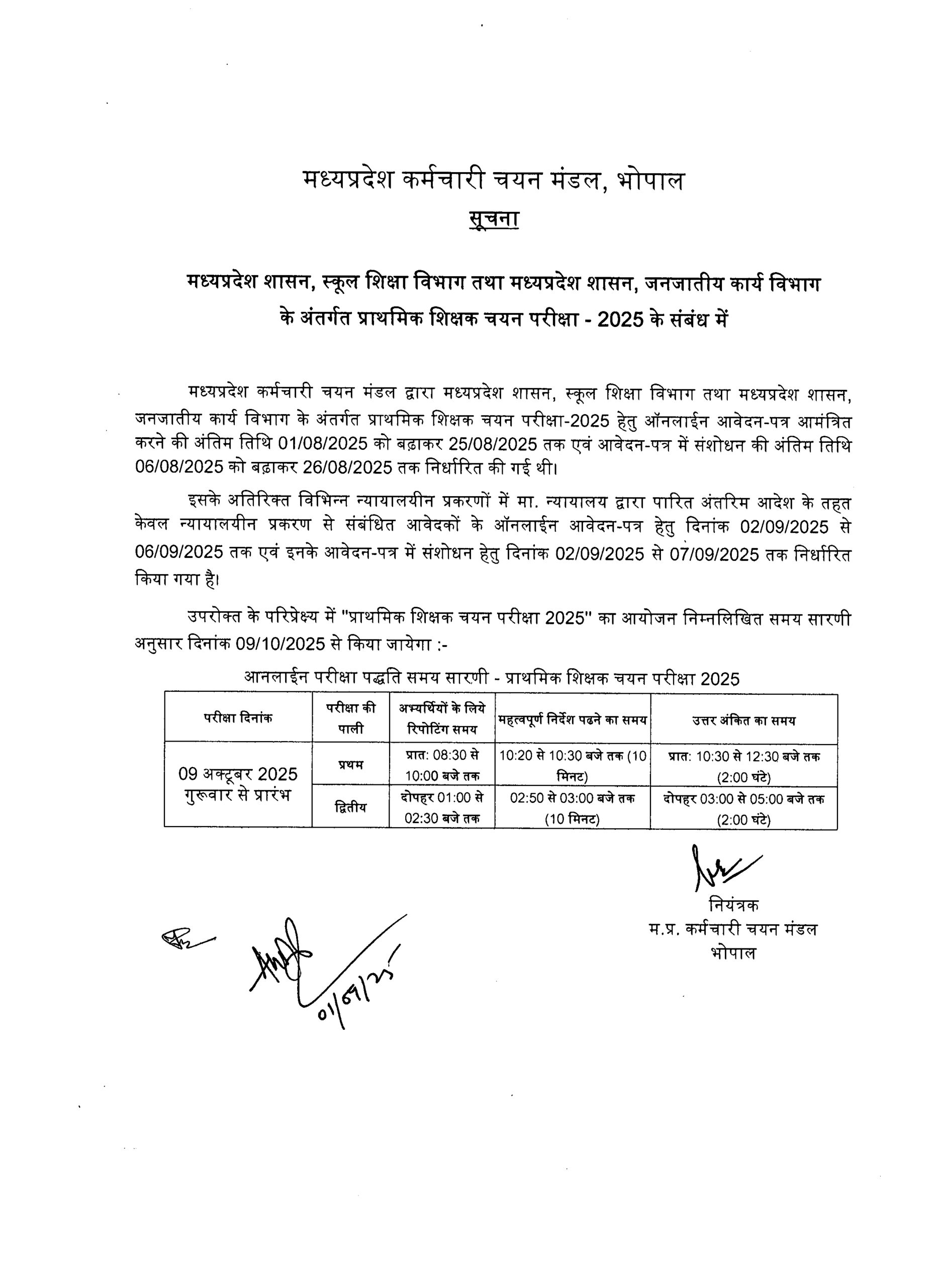 Name of Post: MPESB Primary School Teacher Selection Test PSTST 2025 Admit Card Out
